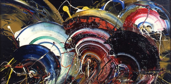 1924年兵庫県生まれ。京都市絵画専門学校(現京都市立芸術大学)日本画科を卒業後、油絵に転向。大阪市立美術研究所に学ぶ。天井から吊るしたロープを両手でつかみ、床に広げたキャンバスの上に絵具を出し、体をダイナミックに動かしながら足を使って絵具を広げて作品を制作するという「フット・ペインティング」を確立した。1971年には、密教への関心が高まり比叡山延暦寺で出家し、天台宗の僧侶となった。