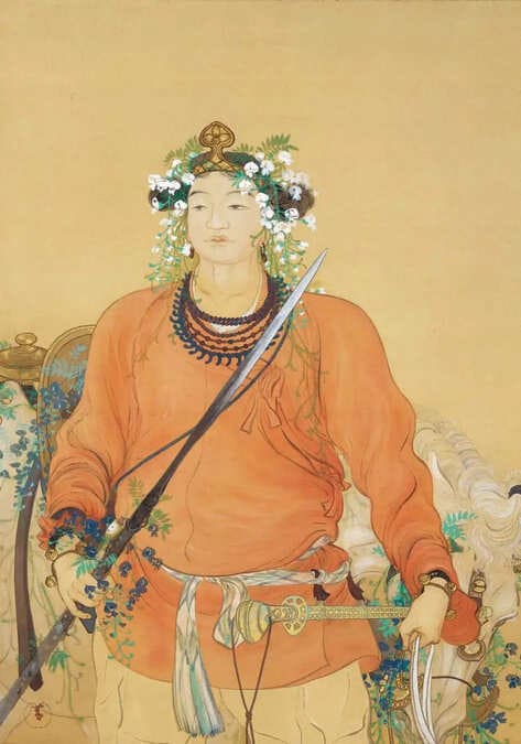 1955年(昭和30年)に文化勲章を受章、文化功労者に選ばれました。晩年には法隆寺金堂壁画の再現模写・高松塚古墳壁画の模写など文化財保護事業の中核を担い、1974年にはローマ法王庁の依頼でバチカン宮殿に収める「細川ガラシャ夫人像」を完成させています。
